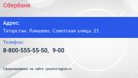 Сбербанк по адресу Татарстан, Лаишево, Советская улица, 21 в дальнейшем Организация, размещена в следующих категориях: