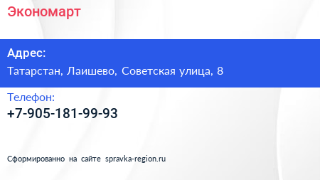 Экономарт по адресу Татарстан, Лаишево, Советская улица, 8 в дальнейшем Организация, размещена в следующих категориях: