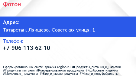 Фотон по адресу Татарстан, Лаишево, Советская улица, 1 в дальнейшем Организация, размещена в следующих категориях: