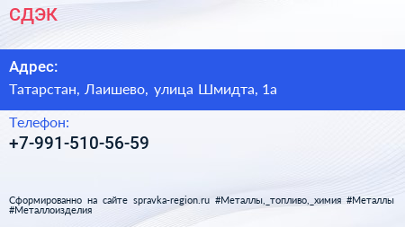 СДЭК по адресу Татарстан, Лаишево, улица Шмидта, 1а в дальнейшем Организация, размещена в следующих категориях: