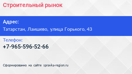 Строительный рынок по адресу Татарстан, Лаишево, улица Горького, 43 в дальнейшем Организация, размещена в следующих категориях: