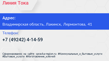 Линия Тока по адресу Владимирская область, Лакинск, Лермонтова, 41 в дальнейшем Организация, размещена в следующих категориях: