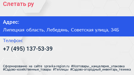 Слетать.ру по адресу Липецкая область, Лебедянь, Советская улица, 34Б в дальнейшем Организация, размещена в следующих категориях: