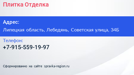 Плитка & Отделка по адресу Липецкая область, Лебедянь, Советская улица, 34Б в дальнейшем Организация, размещена в следующих категориях: