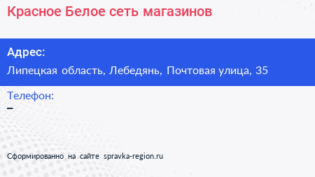 Красное & Белое, сеть магазинов по адресу Липецкая область, Лебедянь, Почтовая улица, 35 в дальнейшем Организация, размещена в следующих категориях: