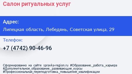 Салон ритуальных услуг по адресу Липецкая область, Лебедянь, Советская улица, 29 в дальнейшем Организация, размещена в следующих категориях: