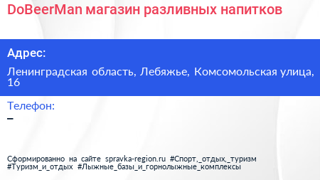 DoBeerMan, магазин разливных напитков по адресу Ленинградская область, Лебяжье, Комсомольская улица, 16 в дальнейшем Организация, размещена в следующих категориях: