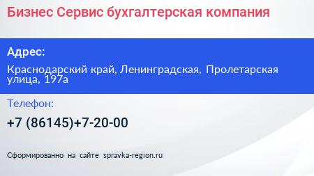 Бизнес-Сервис, бухгалтерская компания по адресу Краснодарский край, Ленинградская, Пролетарская улица, 197а в дальнейшем Организация, размещена в следующих категориях: