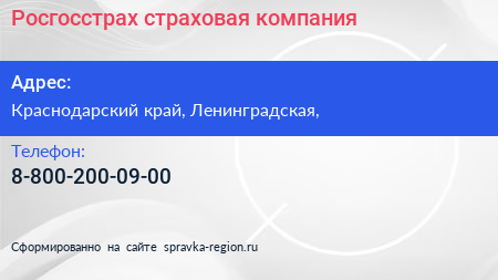 Росгосстрах, страховая компания по адресу Краснодарский край, Ленинградская, в дальнейшем Организация, размещена в следующих категориях: