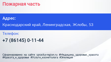 Пожарная часть по адресу Краснодарский край, Ленинградская, Жлобы, 53 в дальнейшем Организация, размещена в следующих категориях: