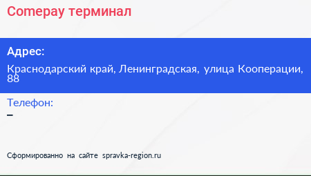 Comepay, терминал по адресу Краснодарский край, Ленинградская, улица Кооперации, 88 в дальнейшем Организация, размещена в следующих категориях: