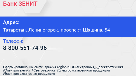 Банк ЗЕНИТ по адресу Татарстан, Лениногорск, проспект Шашина, 54 в дальнейшем Организация, размещена в следующих категориях: