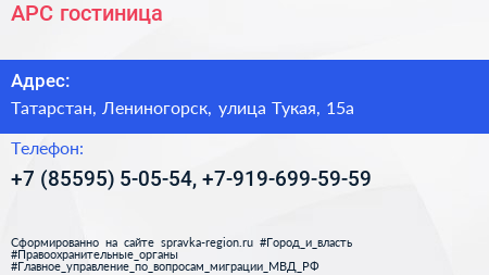 АРС, гостиница по адресу Татарстан, Лениногорск, улица Тукая, 15а в дальнейшем Организация, размещена в следующих категориях: