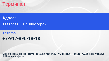 Терминал по адресу Татарстан, Лениногорск, в дальнейшем Организация, размещена в следующих категориях: