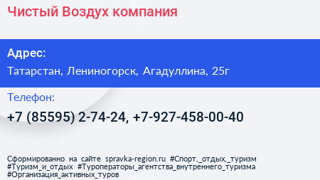 Чистый Воздух, компания по адресу Татарстан, Лениногорск, Агадуллина, 25г в дальнейшем Организация, размещена в следующих категориях: