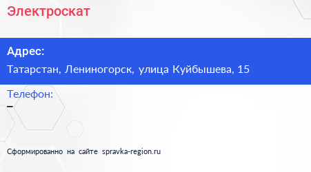 Электроскат по адресу Татарстан, Лениногорск, улица Куйбышева, 15 в дальнейшем Организация, размещена в следующих категориях: