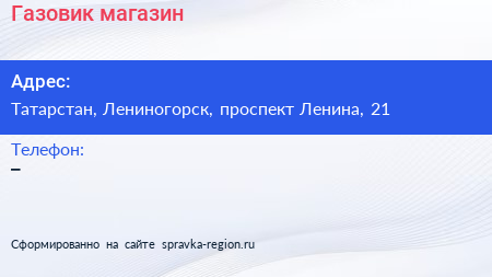 Газовик, магазин по адресу Татарстан, Лениногорск, проспект Ленина, 21 в дальнейшем Организация, размещена в следующих категориях: