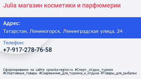 Julia, магазин косметики и парфюмерии по адресу Татарстан, Лениногорск, Ленинградская улица, 24 в дальнейшем Организация, размещена в следующих категориях: