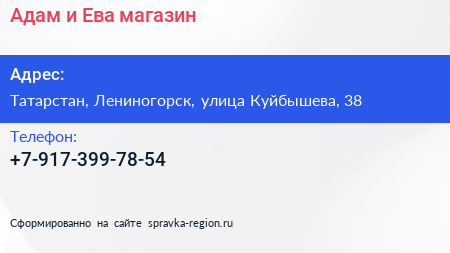 Адам и Ева, магазин по адресу Татарстан, Лениногорск, улица Куйбышева, 38 в дальнейшем Организация, размещена в следующих категориях:
