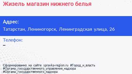 Жизель, магазин нижнего белья по адресу Татарстан, Лениногорск, Ленинградская улица, 26 в дальнейшем Организация, размещена в следующих категориях: