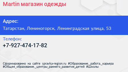 Martin, магазин одежды по адресу Татарстан, Лениногорск, Ленинградская улица, 53 в дальнейшем Организация, размещена в следующих категориях: