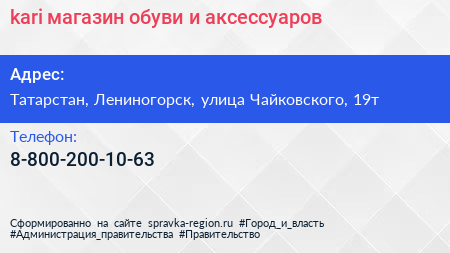 kari, магазин обуви и аксессуаров по адресу Татарстан, Лениногорск, улица Чайковского, 19т в дальнейшем Организация, размещена в следующих категориях: