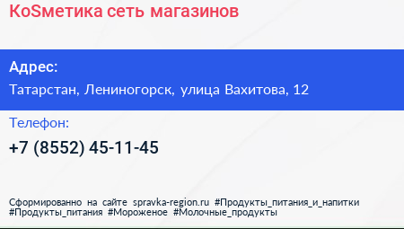 КоSметика, сеть магазинов по адресу Татарстан, Лениногорск, улица Вахитова, 12 в дальнейшем Организация, размещена в следующих категориях: