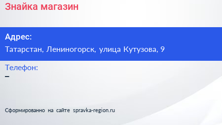 Знайка, магазин по адресу Татарстан, Лениногорск, улица Кутузова, 9 в дальнейшем Организация, размещена в следующих категориях: