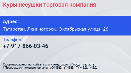 Куры несушки, торговая компания по адресу Татарстан, Лениногорск, Октябрьская улица, 26 в дальнейшем Организация, размещена в следующих категориях: