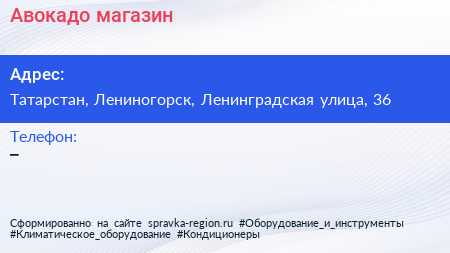 Авокадо, магазин по адресу Татарстан, Лениногорск, Ленинградская улица, 36 в дальнейшем Организация, размещена в следующих категориях:
