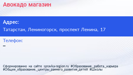 Авокадо, магазин по адресу Татарстан, Лениногорск, проспект Ленина, 17 в дальнейшем Организация, размещена в следующих категориях: