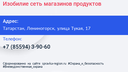 Изобилие, сеть магазинов продуктов по адресу Татарстан, Лениногорск, улица Тукая, 17 в дальнейшем Организация, размещена в следующих категориях: