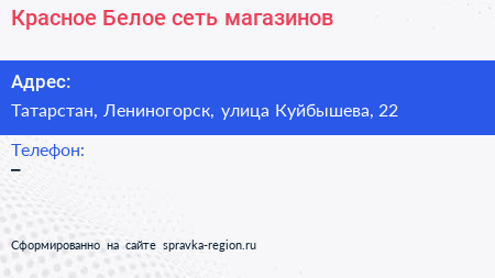 Красное & Белое, сеть магазинов по адресу Татарстан, Лениногорск, улица Куйбышева, 22 в дальнейшем Организация, размещена в следующих категориях: