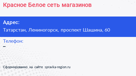 Красное & Белое, сеть магазинов по адресу Татарстан, Лениногорск, проспект Шашина, 60 в дальнейшем Организация, размещена в следующих категориях: