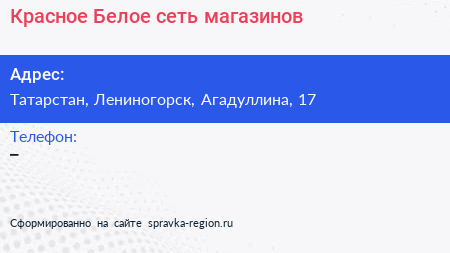 Красное & Белое, сеть магазинов по адресу Татарстан, Лениногорск, Агадуллина, 17 в дальнейшем Организация, размещена в следующих категориях: