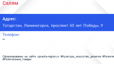Салям по адресу Татарстан, Лениногорск, проспект 50 лет Победы, 9 в дальнейшем Организация, размещена в следующих категориях:
