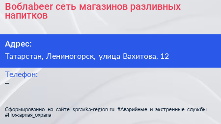 Воблаbeer, сеть магазинов разливных напитков по адресу Татарстан, Лениногорск, улица Вахитова, 12 в дальнейшем Организация, размещена в следующих категориях: