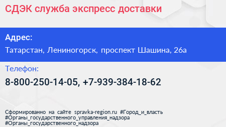 СДЭК, служба экспресс-доставки по адресу Татарстан, Лениногорск, проспект Шашина, 26а в дальнейшем Организация, размещена в следующих категориях: