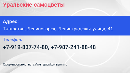 Уральские самоцветы по адресу Татарстан, Лениногорск, Ленинградская улица, 41 в дальнейшем Организация, размещена в следующих категориях: