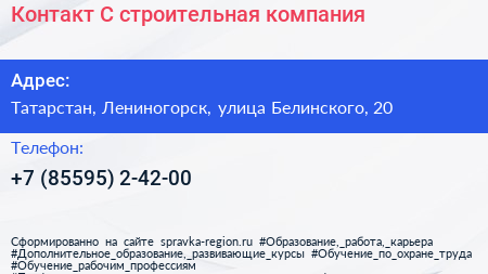 Контакт С, строительная компания по адресу Татарстан, Лениногорск, улица Белинского, 20 в дальнейшем Организация, размещена в следующих категориях: