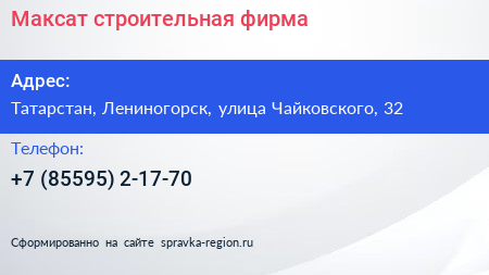 Максат, строительная фирма по адресу Татарстан, Лениногорск, улица Чайковского, 32 в дальнейшем Организация, размещена в следующих категориях: