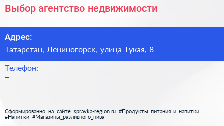 Выбор, агентство недвижимости по адресу Татарстан, Лениногорск, улица Тукая, 8 в дальнейшем Организация, размещена в следующих категориях: