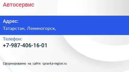 Автосервис по адресу Татарстан, Лениногорск, в дальнейшем Организация, размещена в следующих категориях: