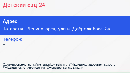 Детский сад №24 по адресу Татарстан, Лениногорск, улица Добролюбова, 3а в дальнейшем Организация, размещена в следующих категориях: