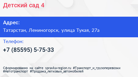 Детский сад №4 по адресу Татарстан, Лениногорск, улица Тукая, 27а в дальнейшем Организация, размещена в следующих категориях: