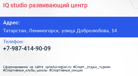 IQ-studio, развивающий центр по адресу Татарстан, Лениногорск, улица Добролюбова, 14 в дальнейшем Организация, размещена в следующих категориях: