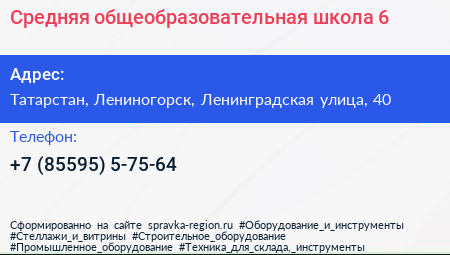 Средняя общеобразовательная школа №6 по адресу Татарстан, Лениногорск, Ленинградская улица, 40 в дальнейшем Организация, размещена в следующих категориях: