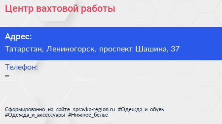 Центр вахтовой работы по адресу Татарстан, Лениногорск, проспект Шашина, 37 в дальнейшем Организация, размещена в следующих категориях: