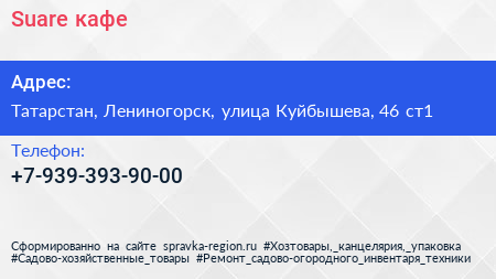 Suare, кафе по адресу Татарстан, Лениногорск, улица Куйбышева, 46 ст1 в дальнейшем Организация, размещена в следующих категориях: