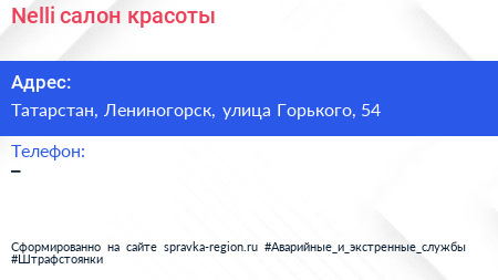 Nelli, салон красоты по адресу Татарстан, Лениногорск, улица Горького, 54 в дальнейшем Организация, размещена в следующих категориях: